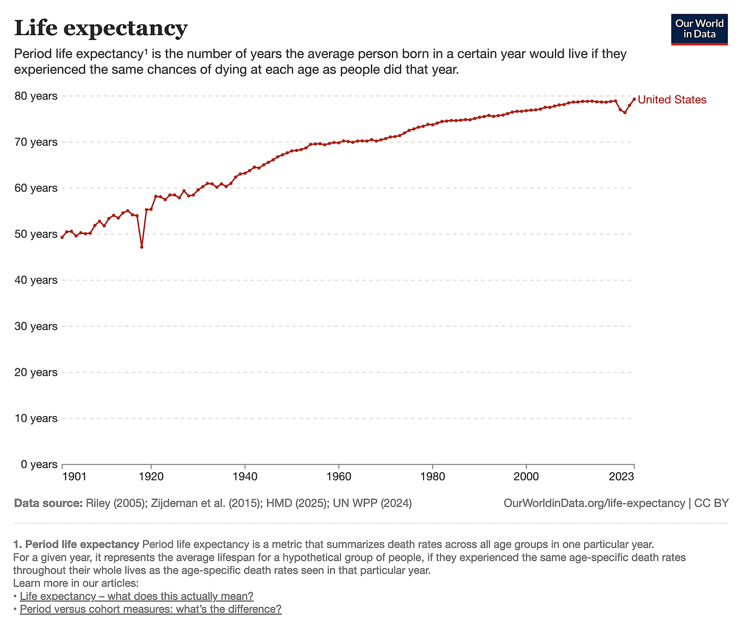 Graph 8: Life Expectancy 1901-2023 from Our World in Data. https://ourworldindata.org/life-expectancy